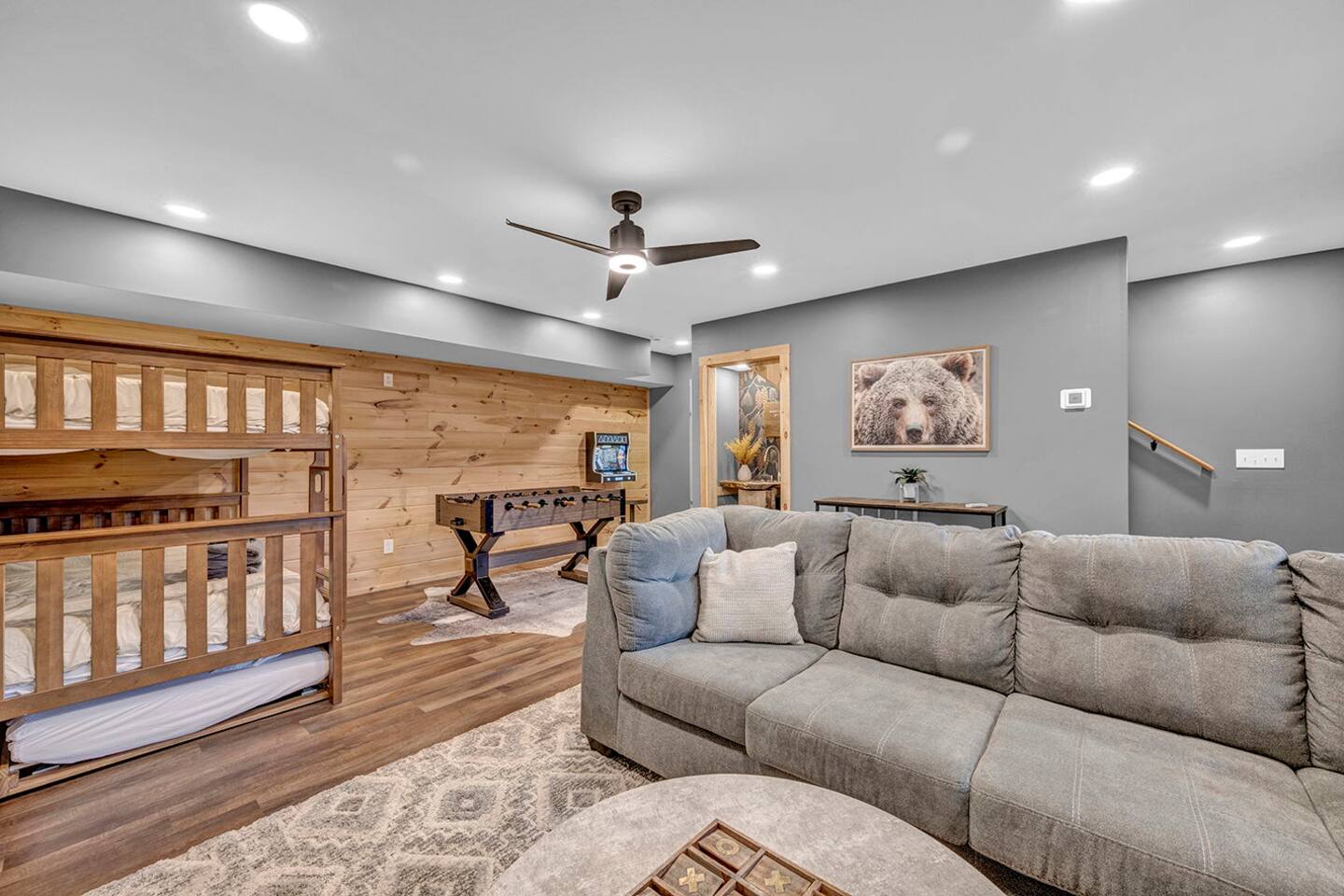 • 🏔 Less than 10 minutes to Beech Mountain Resort • 🛌 3 King beds, 1 full-over-full bunk bed with twin trundle • 🛁 3 full bathrooms • 🍽️ Fully stocked kitchen with open-concept living area • 🔥 Gas fireplace in main living room • 🧺 In-unit washer & dryer • 🎮 Second living area downstairs with arcade games, smart TV, and foosball table • 🌟 Private hot tub on lower deck • 🍔 Grill and outdoor dining area • 🔥 Firepit with seating for cozy nights • 🐾 Fenced-in yard, perfect for dogs • 📶 High-speed Wi-Fi • ❄️ Central heat & AC • 🧼 Fresh linens, towels, and starter supplies provided • ⚡ Whole-home generator for peace of mind during power outages • 🚗 Easy access, paved roads, parking for multiple cars • 🚶♂️ Close to skiing, hiking, dining, and shops